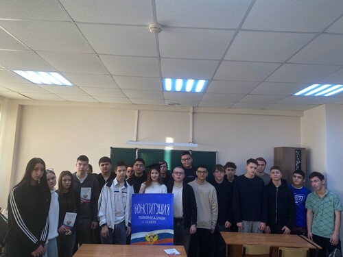 В честь праздника особый приглашённый гость - наша Конституция, роль которой исполнила студентка 2 курса 23 группы Виолетта Гонышева, произнесла слова поздравления и провела Викторину на знание Основного закона России. Все участники получили полезные для дальнейшей учёбы призы - экземпляры Конституций с пожеланиями от директора нашего колледжа Анна Мушинская.