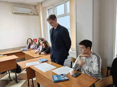 Накануне этой знаменательной даты студенты 11 группы, совместно с преподавателем истории Румия Давлетшина, организовали театрализованный урок-суд. Ребята примерили на себя роли судьи, главных обвинителей от СССР, Великобритании, Франции и США, свидетелей и жертв нацистских преступлений и, конечно, самих преступников. Обвинитель от СССР зачитала самые яркие документы и привела ужасающие улики, показывающие бесчеловечность нацистов.