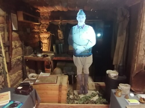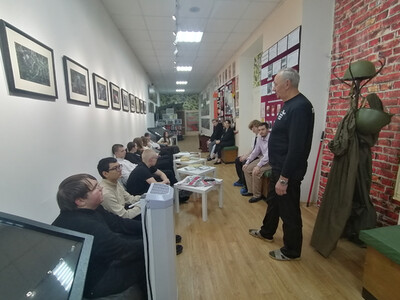 Руководитель клуба Сергей Иванович Ельчанинов рассказал о важности поисковой работы, о том, как проходят их экспедиции, провел подробную экскурсию по музею, в ходе которой показал имеющиеся экспонаты - артефакты военного времени, предметы быта простых жителей Советского Союза.