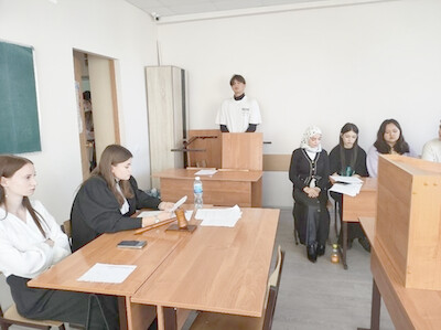 В ходе постановочного судебного процесса студенты примерили на себя роли участников процесса: председательствующего судьи, секретаря судебного заседания, прокурора, подсудимых, адвокатов и свидетелей.