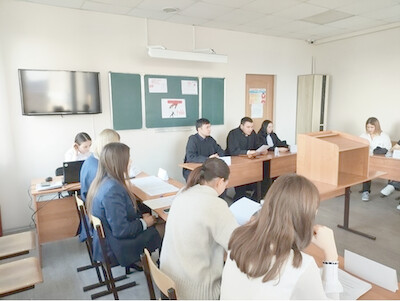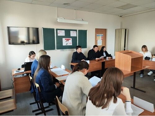 В ходе постановочного судебного процесса студенты успешно разыграли роли судей, обвинителей, адвокатов, подсудимых, полностью погрузившись в реалии судебного разбирательства с привлечением экспертов и исследованием видео-допроса.