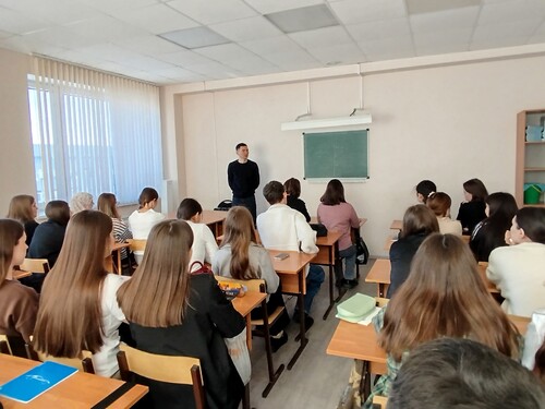 Студентам было рассказано о преимуществах поступления на службу в органы ФСБ, преимуществах выбора такой профессии. Студенты изучили профориентационные материалы, задали интересующие их вопросы.
